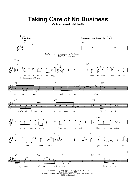 "Taking Care Of No Business" Sheet Music by Jimi Hendrix