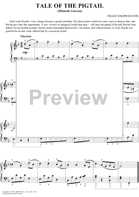 Digital Sheet Music for Tale of the Pigtail (Minuetto Giocoso) by Franz Joseph Haydn, John W. Schaum scored for Easy Piano; id:296195