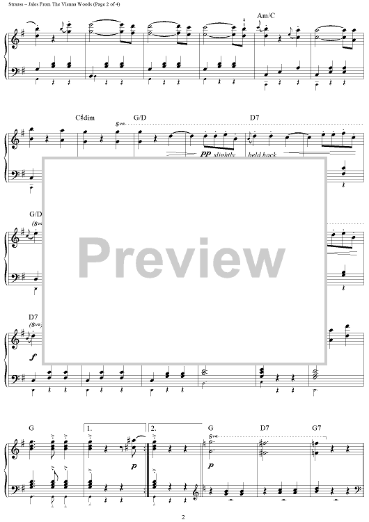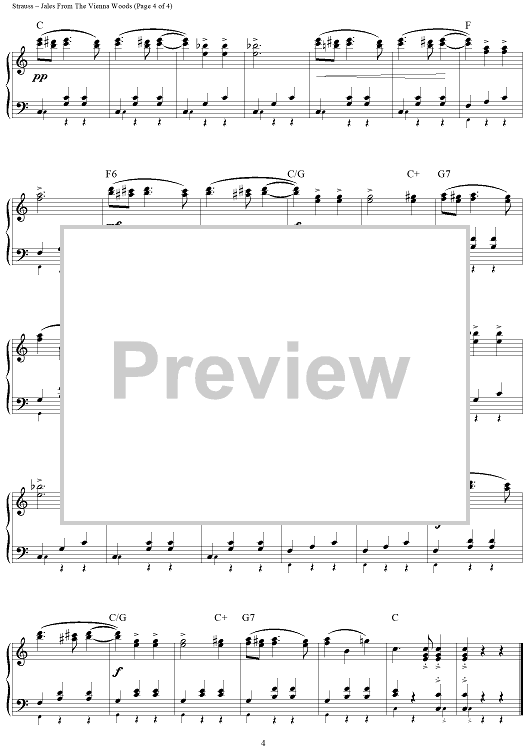 Digital Sheet Music for Tales From the Vienna Woods by Johann Strauss, Jr. scored for Easy Piano/Chords; id:437453