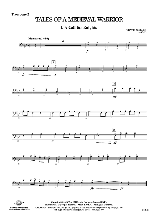 "Tales of a Medieval Warrior - Trombone 2" Sheet Music by Travis J. Weller