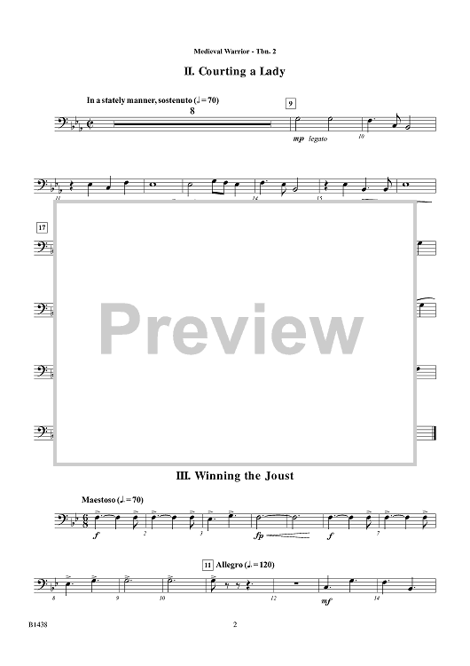Digital Sheet Music for Tales of a Medieval Warrior - Trombone 2 by Travis J. Weller scored for Young Band; id:415374