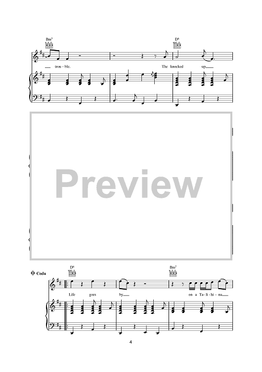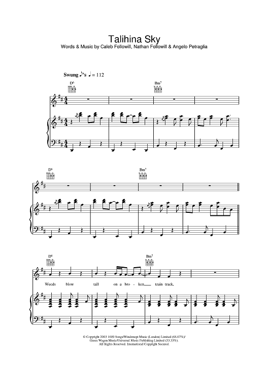 Digital Sheet Music for Talihina Sky by Angelo Petraglia, Caleb Followill, Nathan Followill, Kings of Leon scored for Piano/Vocal/Chords; id:382876