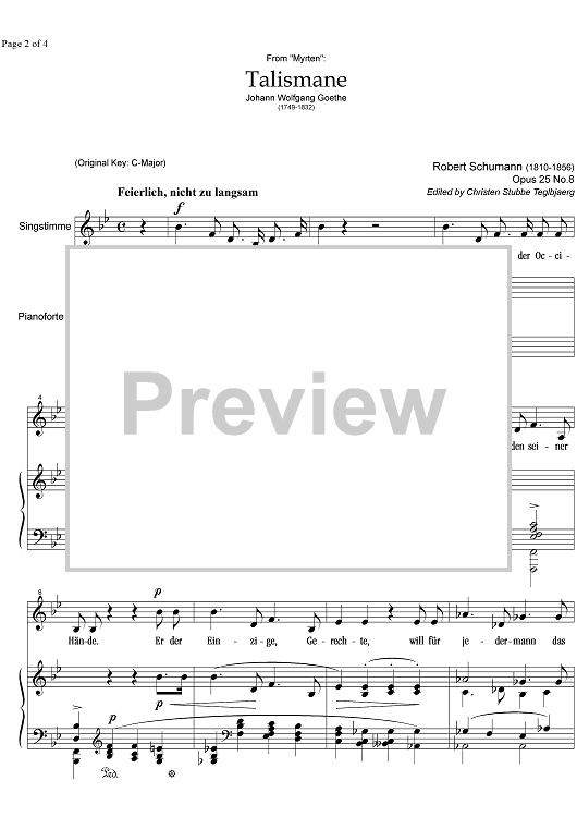 Digital Sheet Music for Talismane Op.25 No. 8 by , Robert Schumann scored for Mezzo-soprano or Baritone/Piano; id:332463