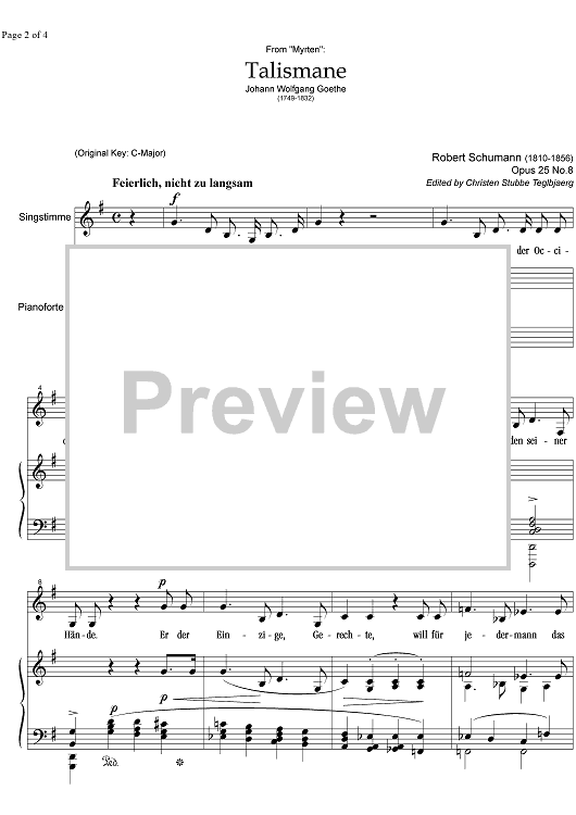 Digital Sheet Music for Talismane Op.25 No. 8 by , Robert Schumann scored for Alto or Bass/Piano; id:332466