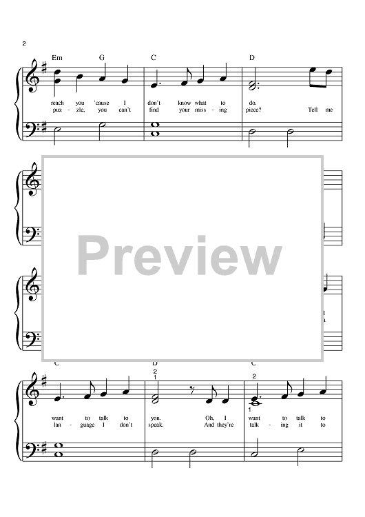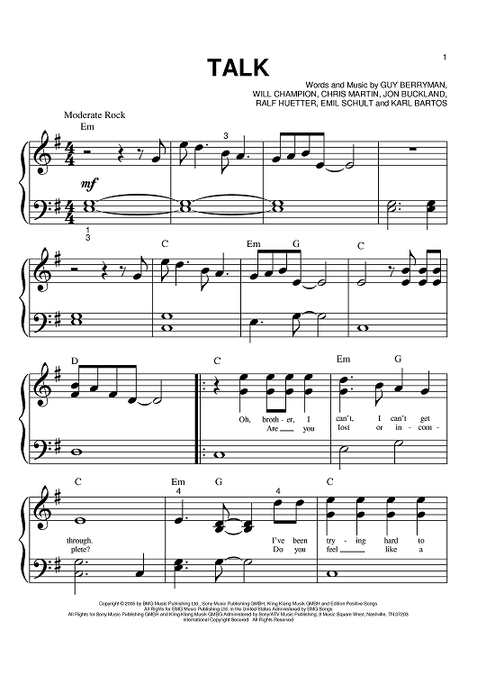 Digital Sheet Music for Talk by Chris Martin, Coldplay, Karl Bartos, Ralf Huetter, Emil Schult, Jonny Buckland, Guy Berryman scored for Big Note Piano; id:392343