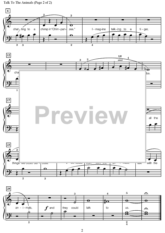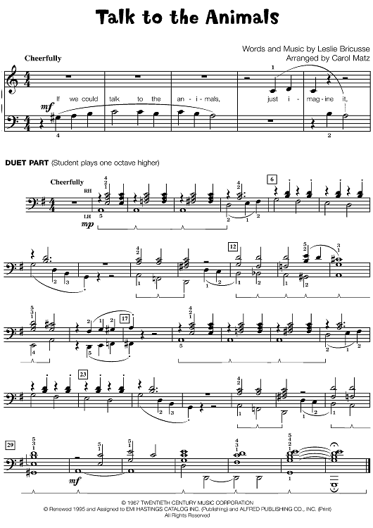 Digital Sheet Music for Talk to the Animals (from "Doctor Doolittle") by Leslie Bricusse, Carol Matz scored for Piano; id:499882