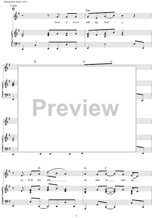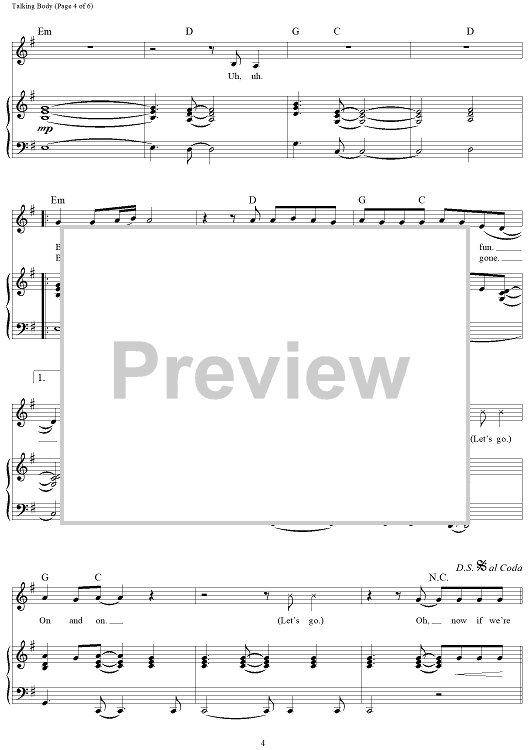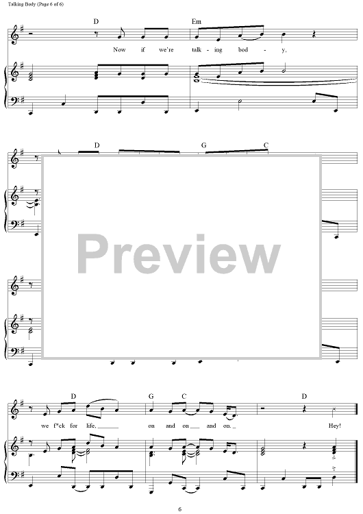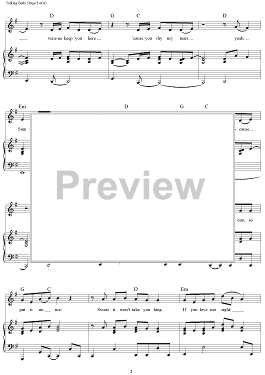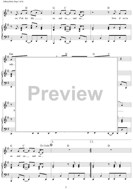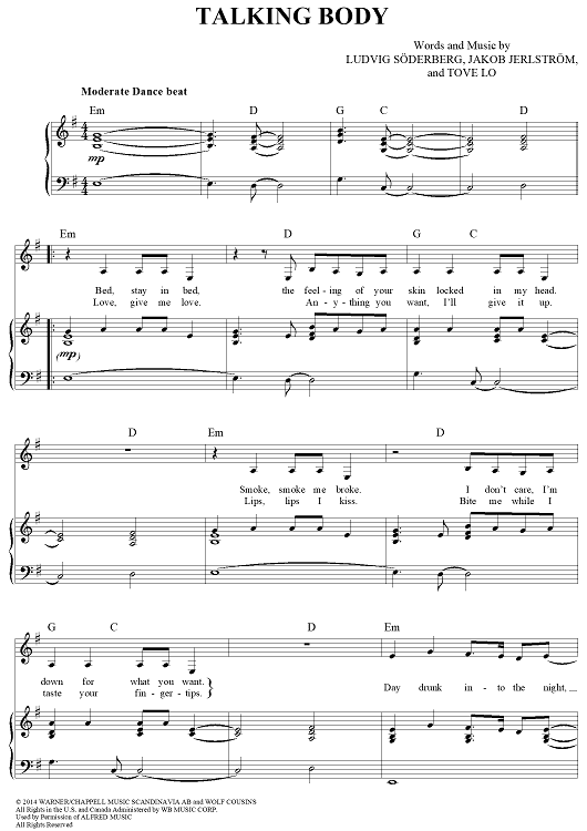 Digital Sheet Music for Talking Body by Tove Lo, Jakob Jerlström, Ludvig Söderberg scored for Piano/Vocal/Chords; id:449654