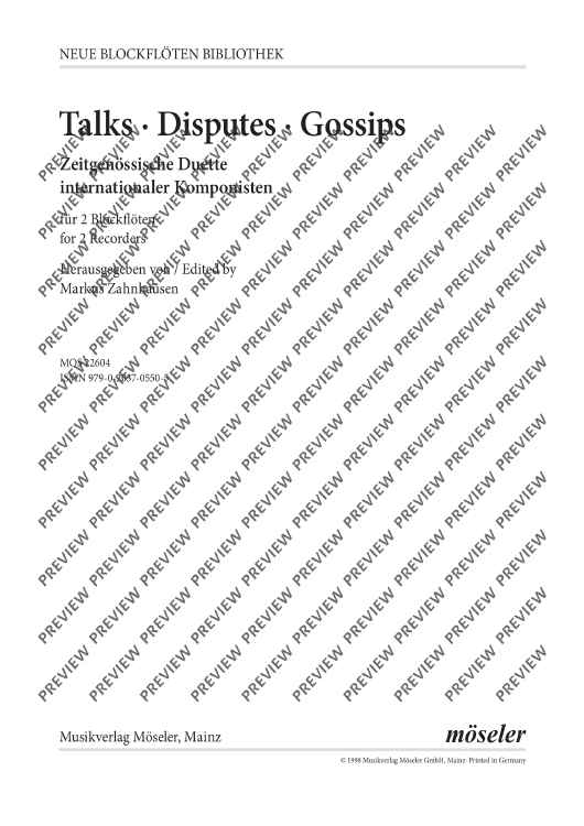 Digital Sheet Music for Talks - Disputes - Gossips - Performing Score by scored for 2 Recorders (at); id:497779