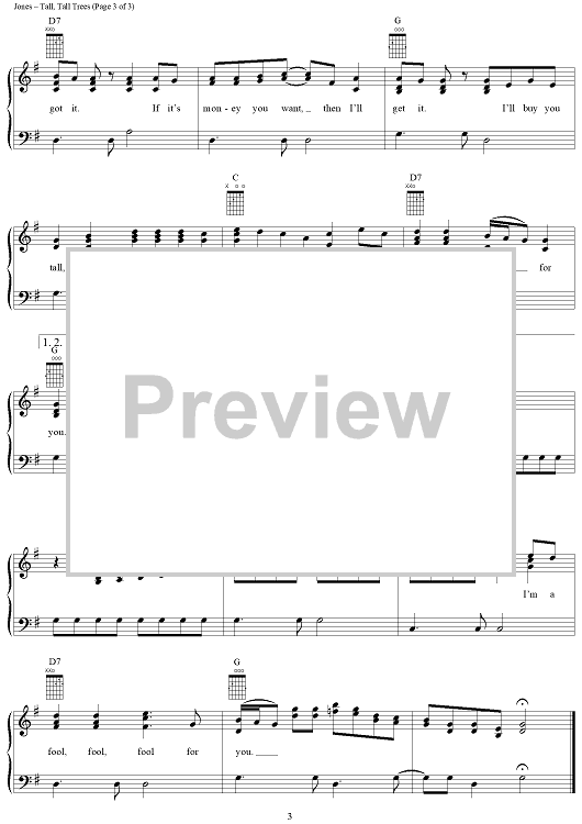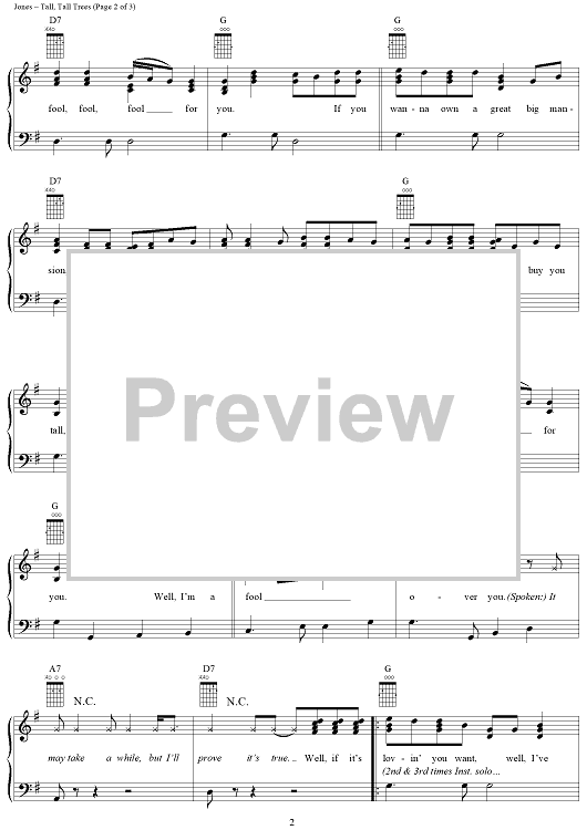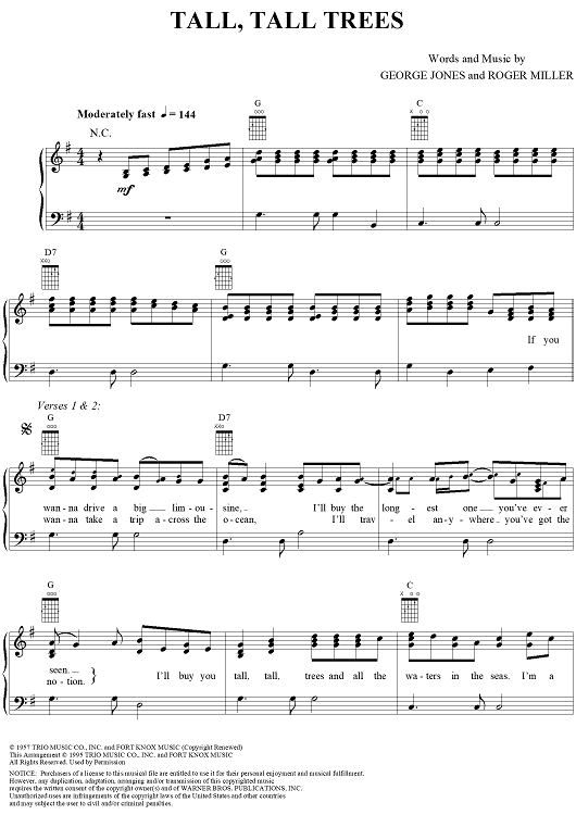 Digital Sheet Music for Tall, Tall Trees by Roger Miller, George Jones, Al Jackson Jr scored for Piano/Vocal/Chords; id:265180