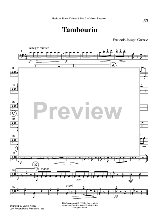 Digital Sheet Music for Tambourin - Part 3 Cello or Bassoon by , Francois-Joseph Gossec, Daniel Kelley scored for Instrumental Trio; id:422769