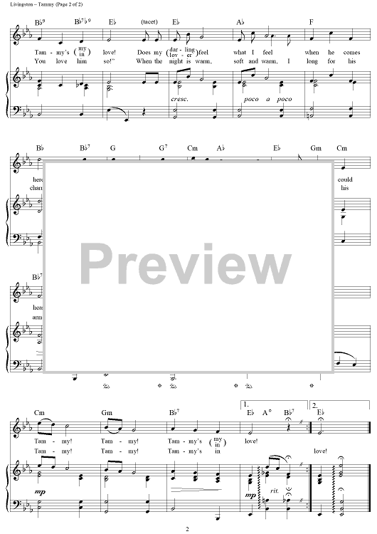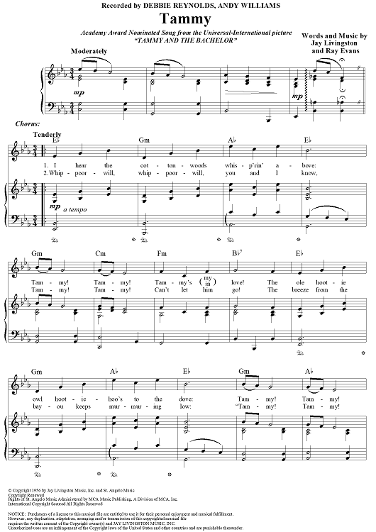Digital Sheet Music for Tammy by Andy Williams, Jay Livingston, Ray Evans, Debbie Reynolds scored for Piano/Vocal/Chords; id:110689
