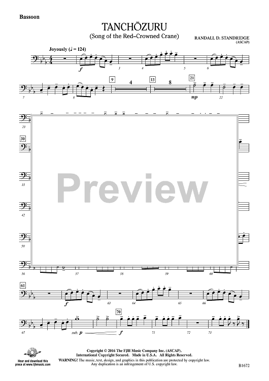 Digital Sheet Music for Tanchozuru - Bassoon by Randall D. Standridge scored for Concert Band; id:508833