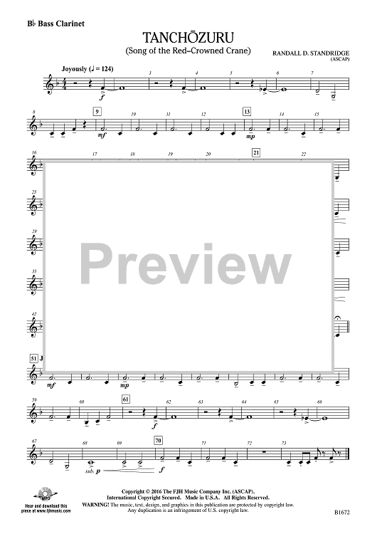 Digital Sheet Music for Tanchozuru - Bb Bass Clarinet by Randall D. Standridge scored for Concert Band; id:508836