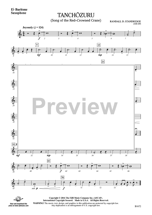 Digital Sheet Music for Tanchozuru - Eb Baritone Saxophone by Randall D. Standridge scored for Concert Band; id:508839