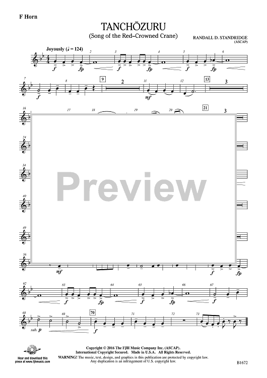 Digital Sheet Music for Tanchozuru - F Horn by Randall D. Standridge scored for Concert Band; id:508842