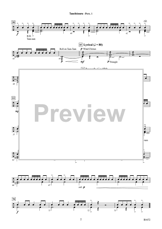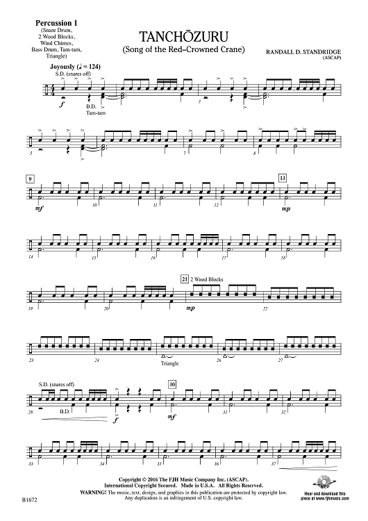 Digital Sheet Music for Tanchozuru - Percussion 1 by Randall D. Standridge scored for Concert Band; id:508851