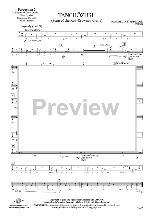 Digital Sheet Music for Tanchozuru - Percussion 2 by Randall D. Standridge scored for Concert Band; id:508852