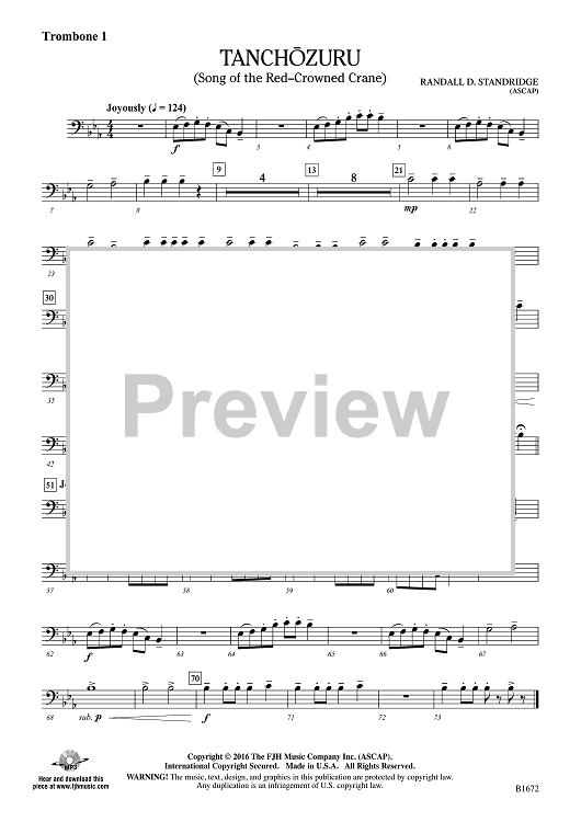 Digital Sheet Music for Tanchozuru - Trombone 1 by Randall D. Standridge scored for Concert Band; id:508843