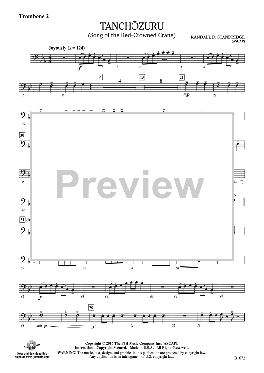 Digital Sheet Music for Tanchozuru - Trombone 2 by Randall D. Standridge scored for Concert Band; id:508844