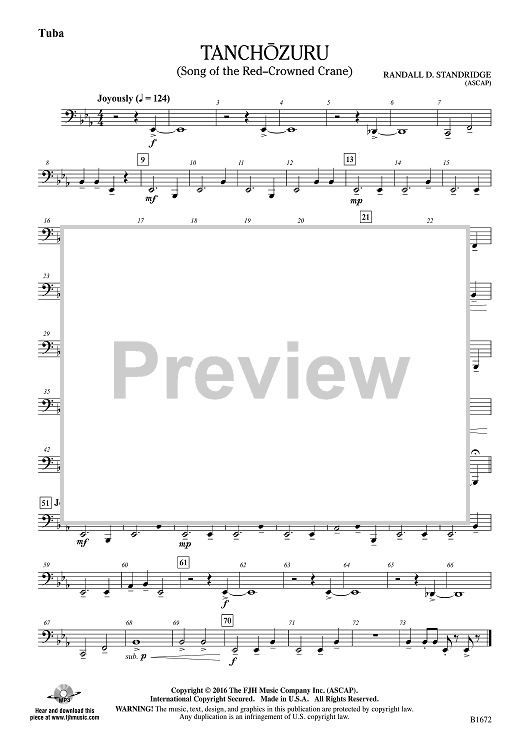 Digital Sheet Music for Tanchozuru - Tuba by Randall D. Standridge scored for Concert Band; id:508847