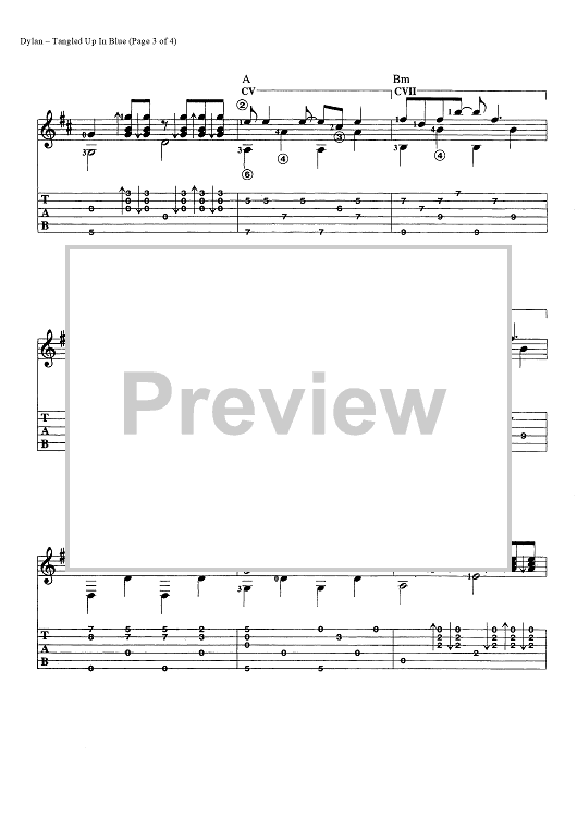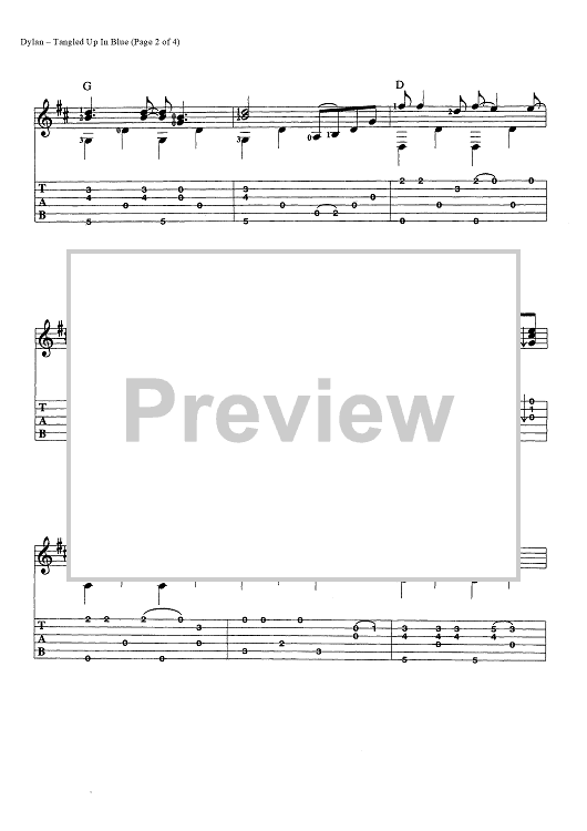 Digital Sheet Music for Tangled Up in Blue by Bob Dylan scored for Guitar Tab/Chords; id:447167