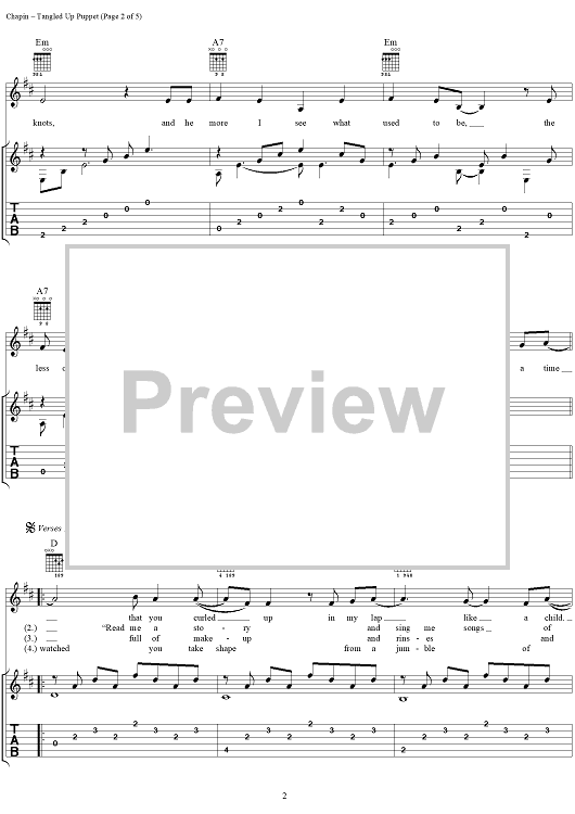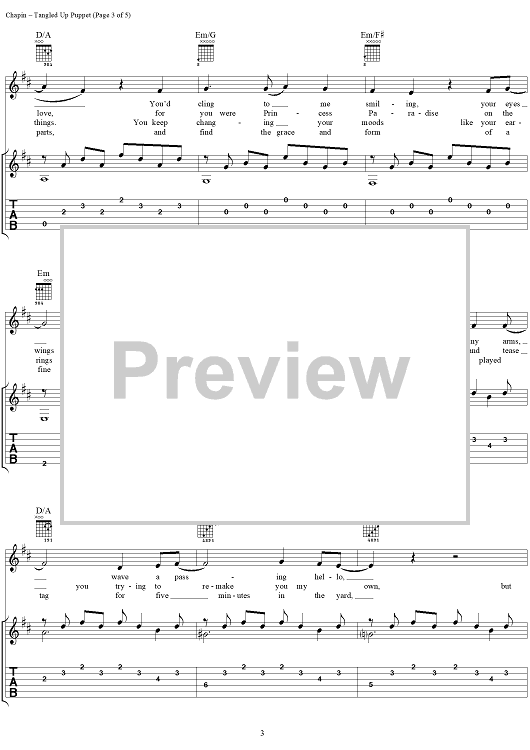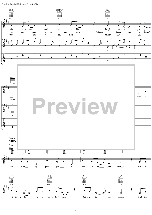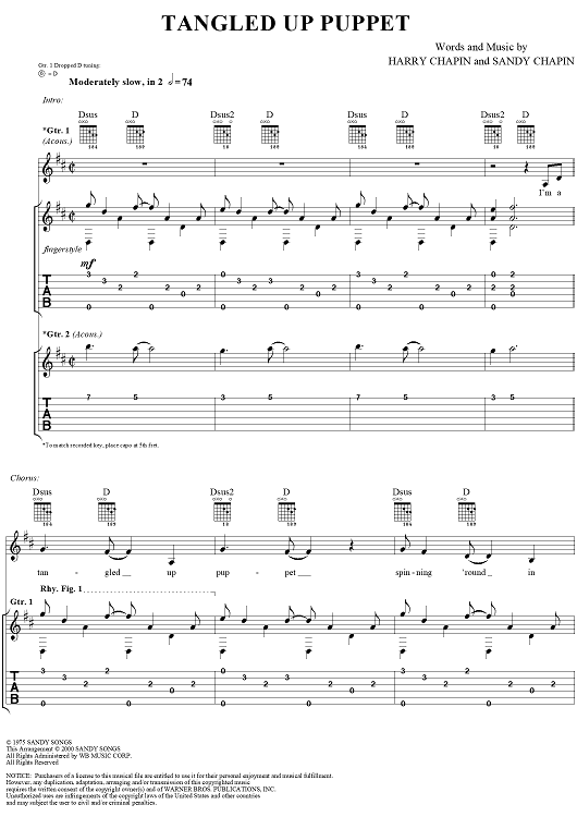 Digital Sheet Music for Tangled Up Puppet by Harry Chapin, Sandy Chapin scored for Guitar Tab/Vocal; id:286810