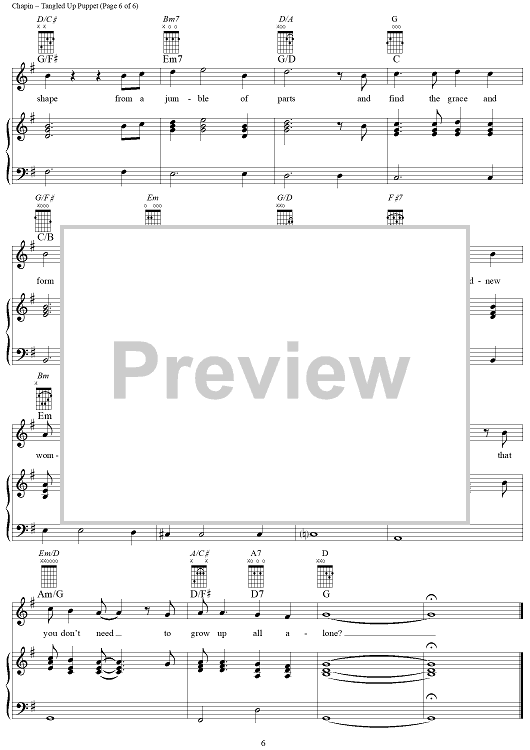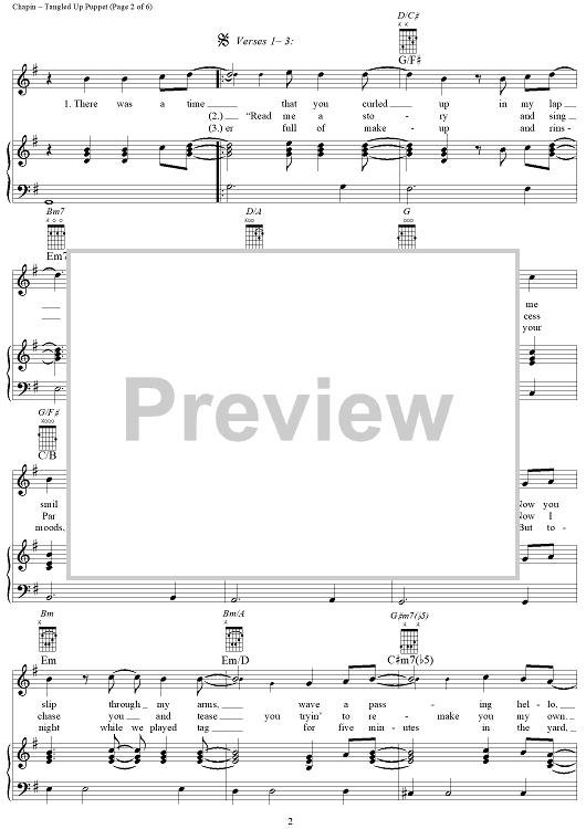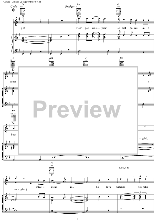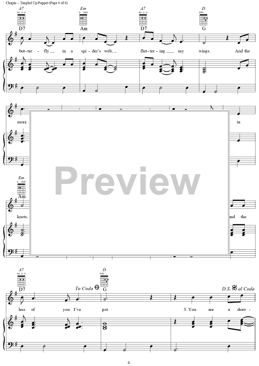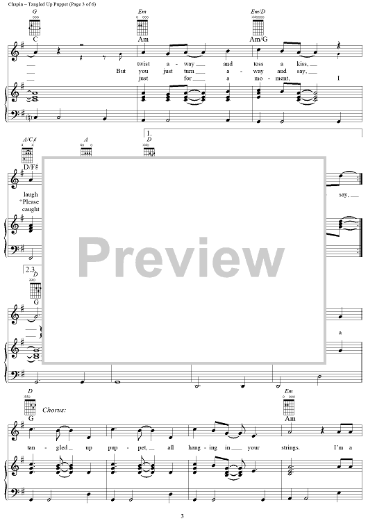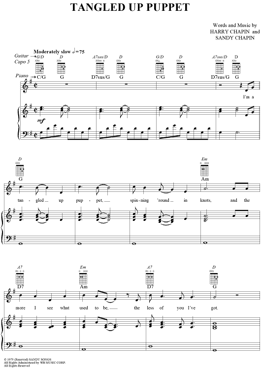 Digital Sheet Music for Tangled Up Puppet by Harry Chapin scored for Piano/Vocal/Chords; id:417442