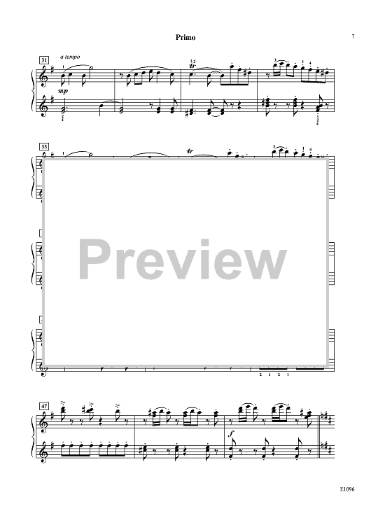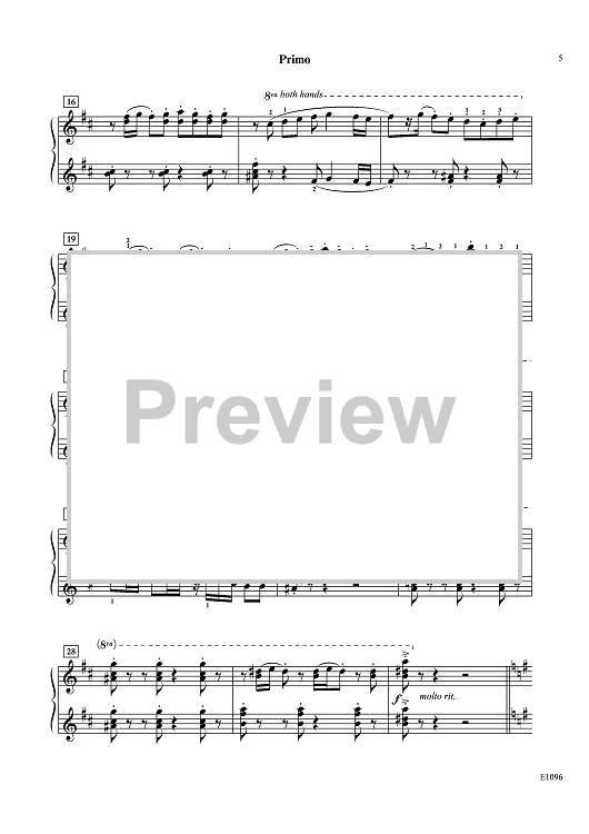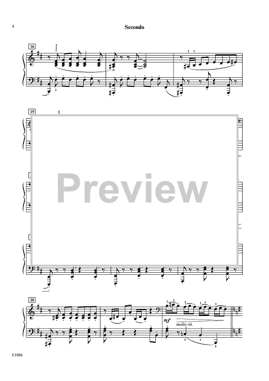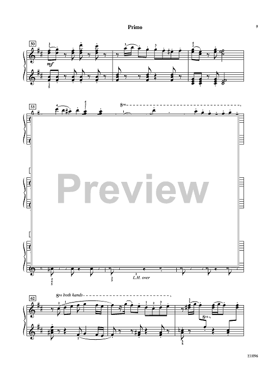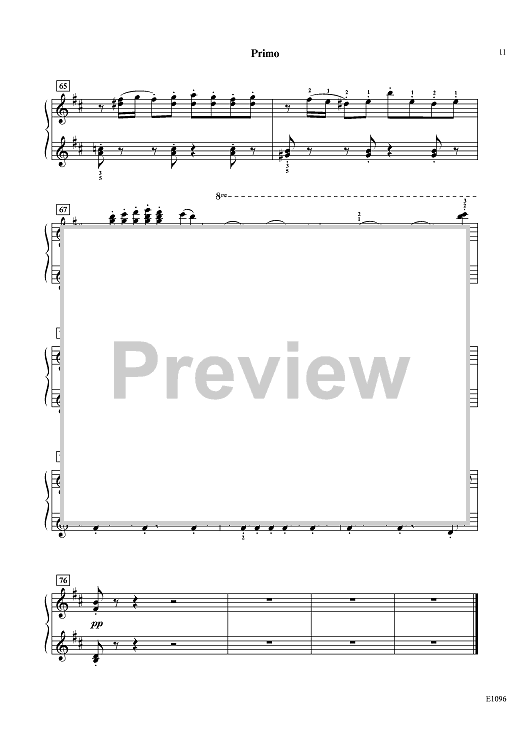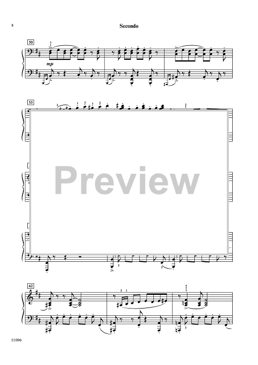 Rhythmic and romantic, this passionate tango would make a rousing finale to a recital. Starts in the key of B minor and modulates to E minor in the middle section. Requires expert ensemble playing. Just as impressive as the dance itself, audiences will appreciate the dramatic flair and grand style of this tango.