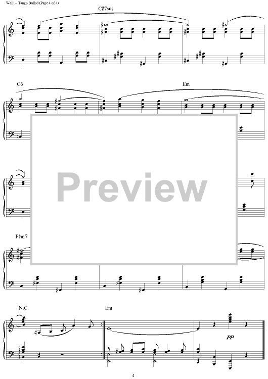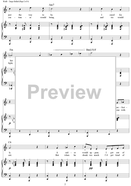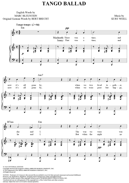 Digital Sheet Music for Tango Ballad by Bertolt Brecht, Kurt Weill scored for Piano/Vocal/Chords; id:313951