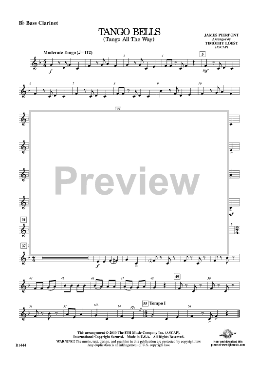 Digital Sheet Music for Tango Bells (Tango All The Way) - Bb Bass Clarinet by James Pierpont, Timothy Loest scored for Beginning Band; id:415140