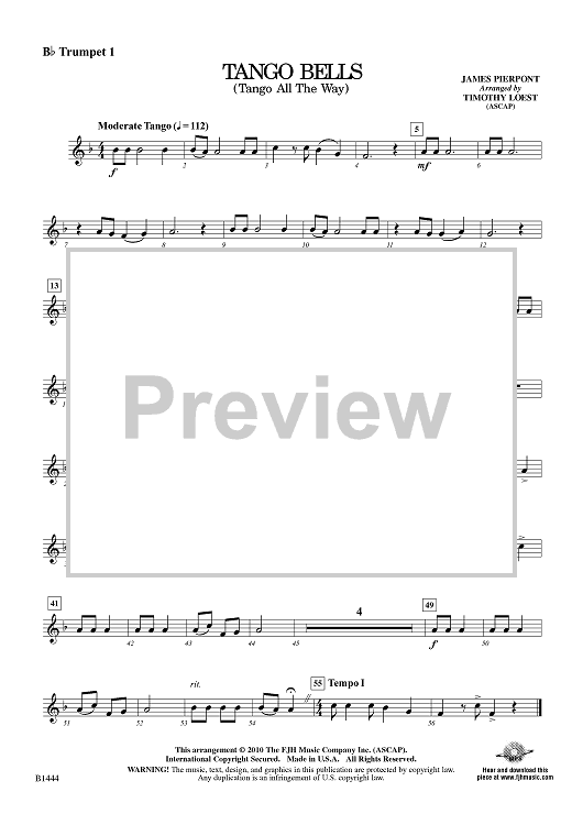 Digital Sheet Music for Tango Bells (Tango All The Way) - Bb Trumpet 1 by James Pierpont, Timothy Loest scored for Beginning Band; id:415144