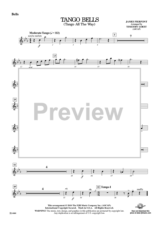 "Tango Bells (Tango All The Way) - Bells" Sheet Music by James Pierpont