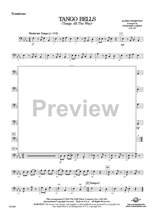 Digital Sheet Music for Tango Bells (Tango All The Way) - Trombone by James Pierpont, Timothy Loest scored for Beginning Band; id:415147