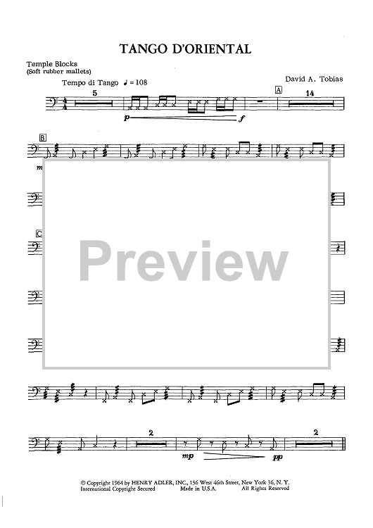 "Tango D'Oriental - Temple Blocks" Sheet Music by David A. Tobias
