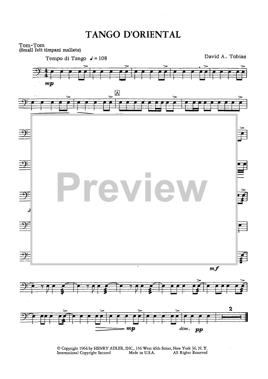 "Tango D'Oriental - Tom-tom" Sheet Music by David A. Tobias
