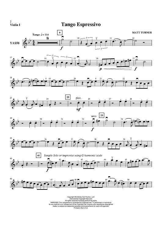 "Tango Espressivo - Violin 1" Sheet Music by Matt Turner