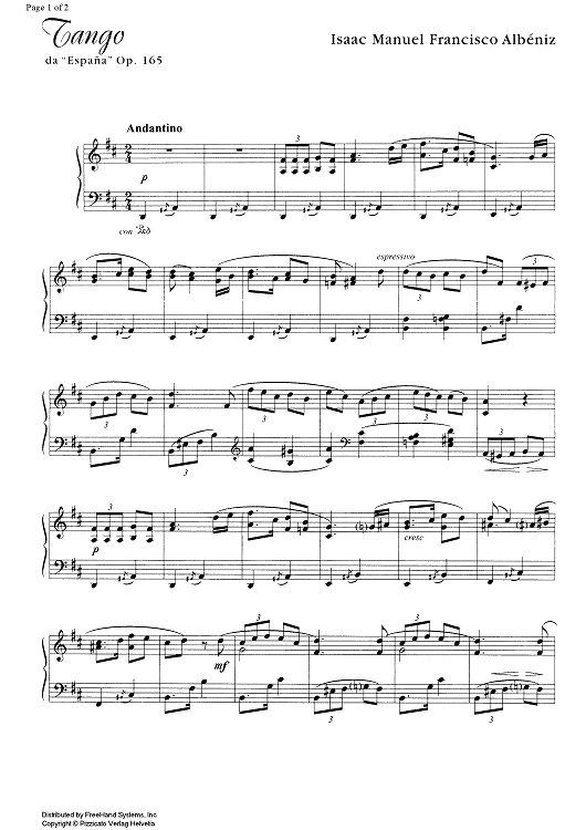 Digital Sheet Music for Tango from Espana Op.165 by Isaac Albéniz scored for Piano Solo; id:329056