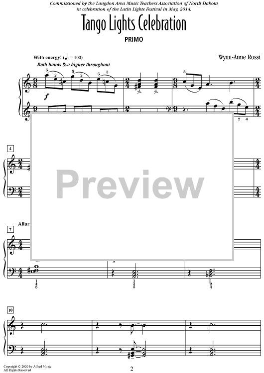 "Tango Lights Celebration" Sheet Music by Wynn-Anne Rossi
