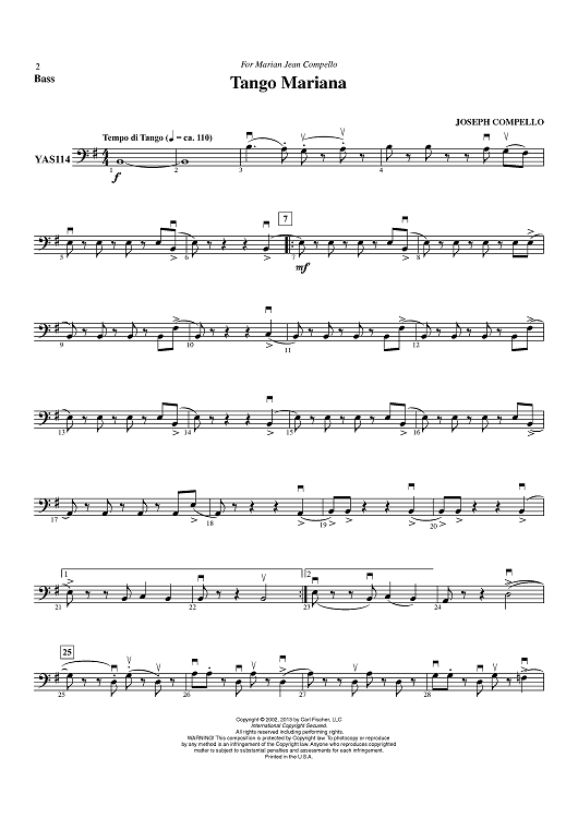 "Tango Mariana - Bass" Sheet Music by Joseph Compello