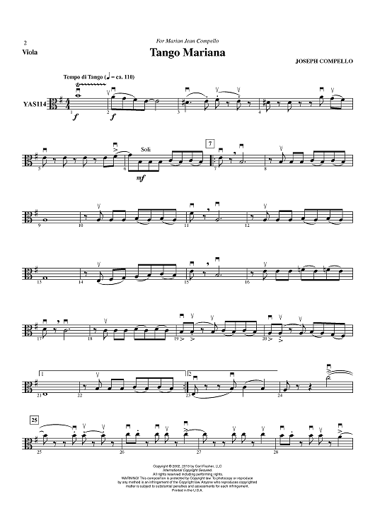 "Tango Mariana - Viola" Sheet Music by Joseph Compello