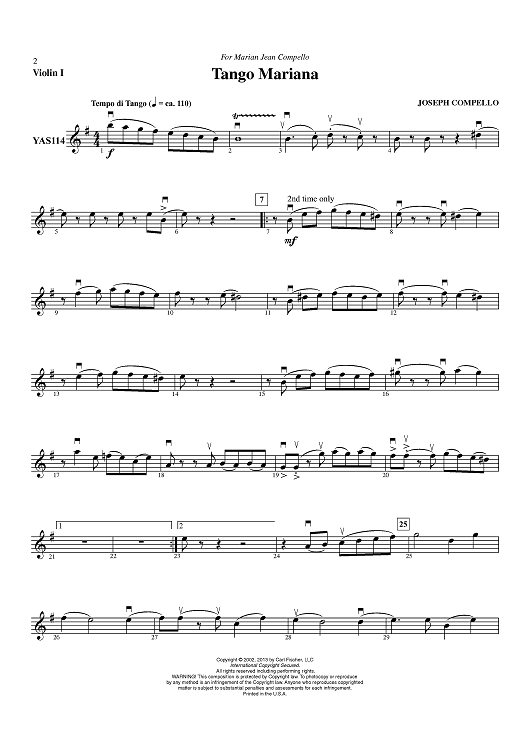 "Tango Mariana - Violin 1" Sheet Music by Joseph Compello