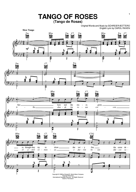 Digital Sheet Music for Tango Of The Roses (Tango Delle Rose) by Carol Raven, Schreier-Bottero scored for Piano/Vocal/Chords; id:382144