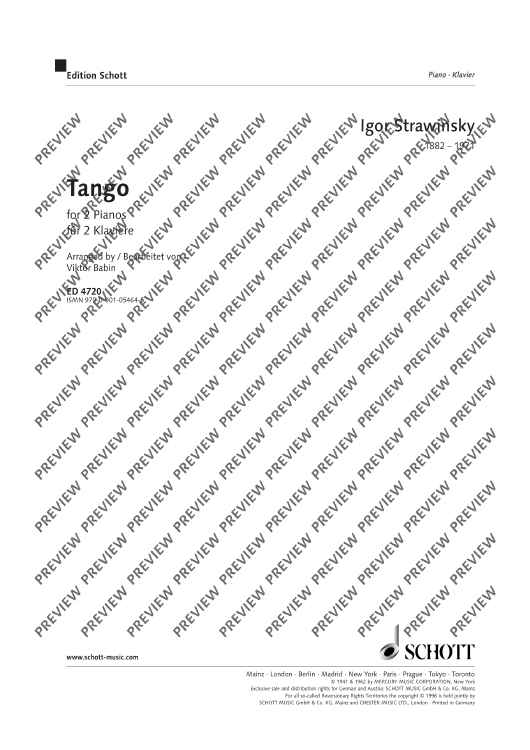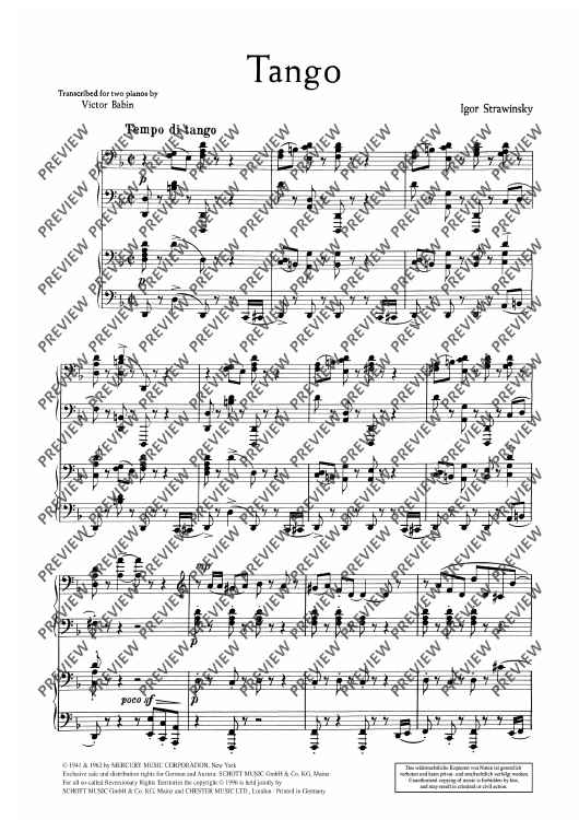Digital Sheet Music for Tango - Performing Score by Igor Stravinsky, Victor Babin scored for 2 Pianos (4 Hands); id:473254