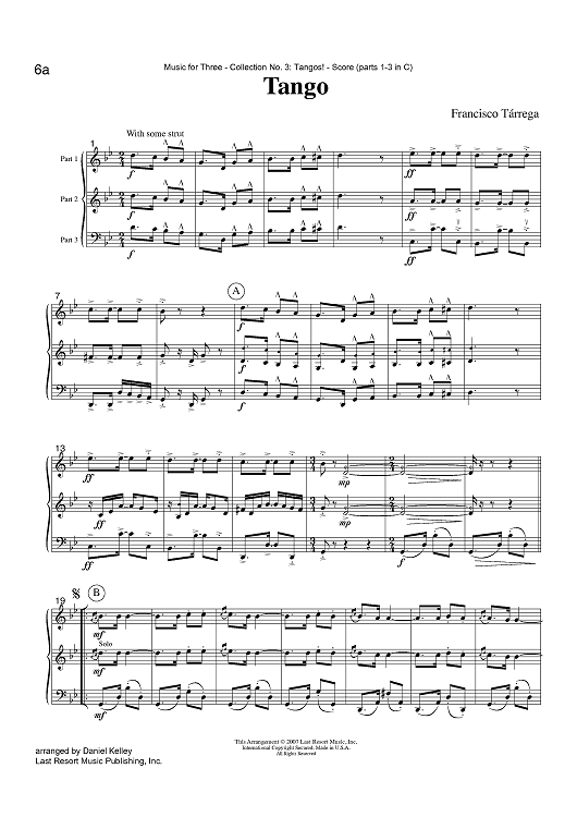 Digital Sheet Music for Tango - Score by , F. Tarrega, Daniel Kelley scored for Instrumental Trio; id:421642