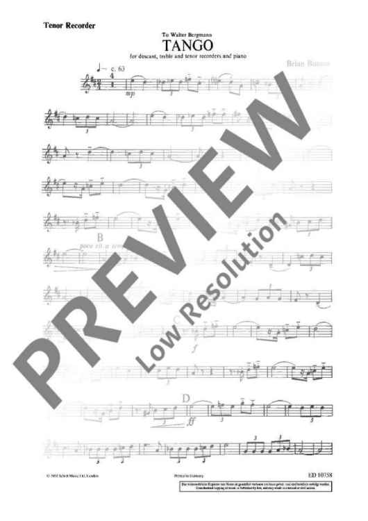 "Tango - Tenor Recorder" Sheet Music by Brian Bonsor