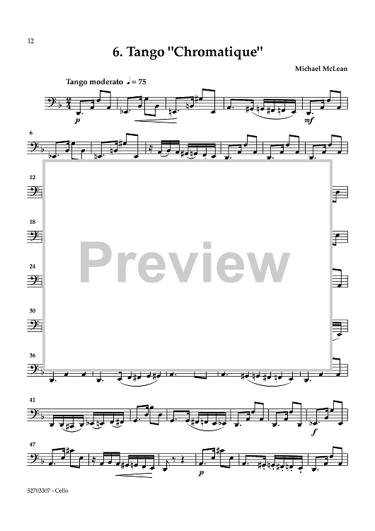 Digital Sheet Music for Tangos & More: Six Dances for String Quartet - Cello by Michael McLean scored for String Quartet; id:463442