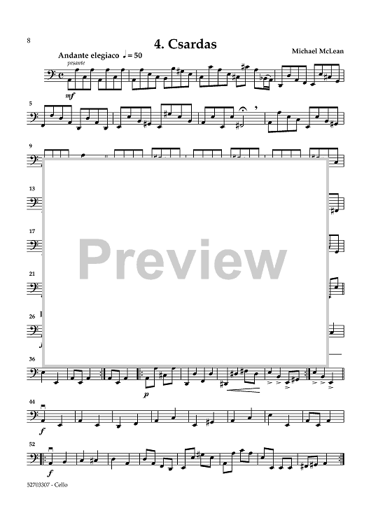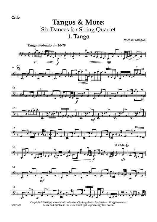 "Tangos & More: Six Dances for String Quartet - Cello" Sheet Music by Michael McLean