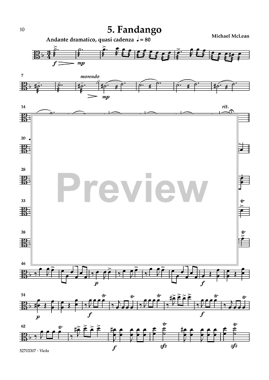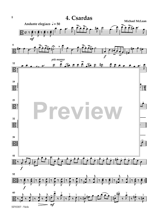 "Tangos & More: Six Dances for String Quartet - Viola" Sheet Music by Michael McLean