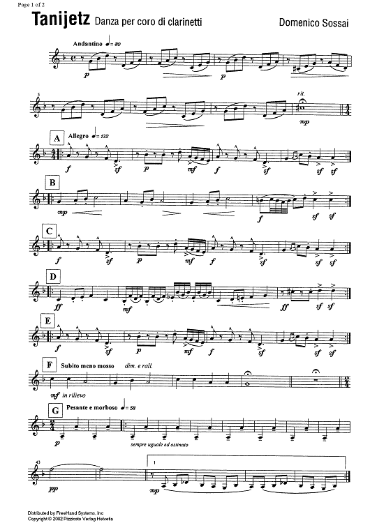 "Tanijetz - Basset Horn in F" Sheet Music by Domenico Sossai