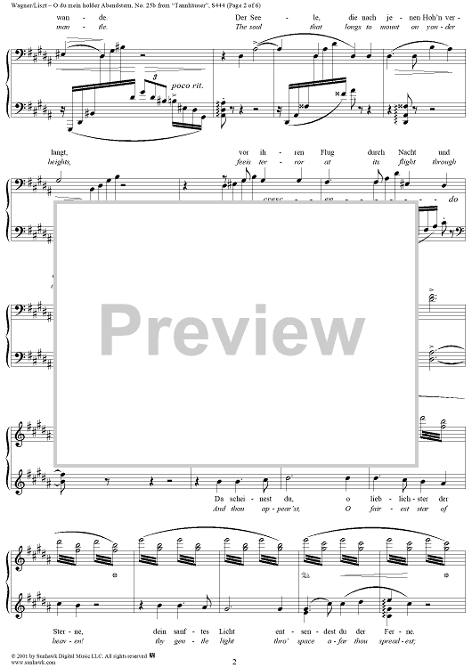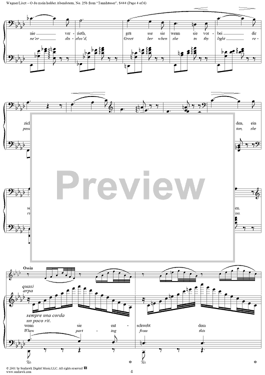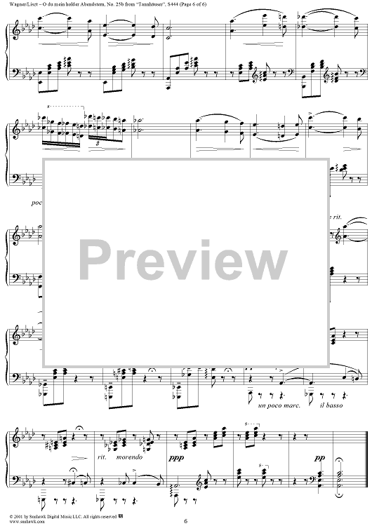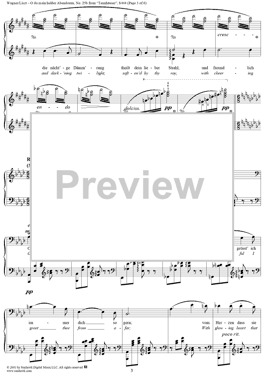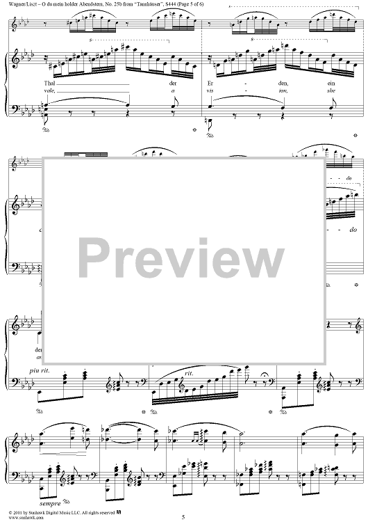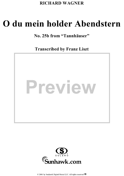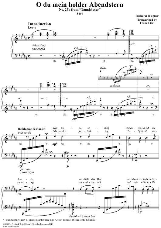 Digital Sheet Music for Tannhäuser, WWV70, Act 3, No. 25b - O du mein holder Abendstern by Richard Wagner by Franz Liszt scored for Piano Solo; id:255667